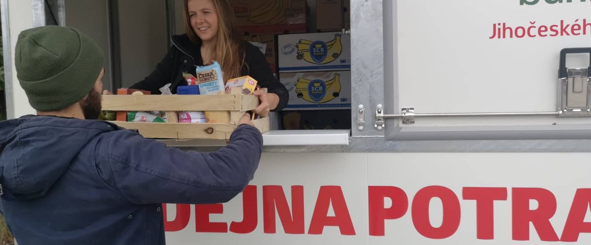 Pojízdnou výdejnu směřujeme do menších měst a obcí. Kombinujeme statickou formu (výdejna stojí na jednom místě a koncový klient do výdejny dochází), tak rozvážkovou formu (pro imobilní klienty realizujeme rozvoz až přímo domů). Většina obcí a měst je zapojena do pravidelného rozvozového plánu, ale zároveň se zapojené obce mění dle potřebnosti a aktuálního počtu klientů. Spolupracujeme také se sociálním odborem Jihočeského kraje a na základě jejich šetření jsme schopni dopravit potravinovou pomoc kamkoliv po Jihočeském kraji.